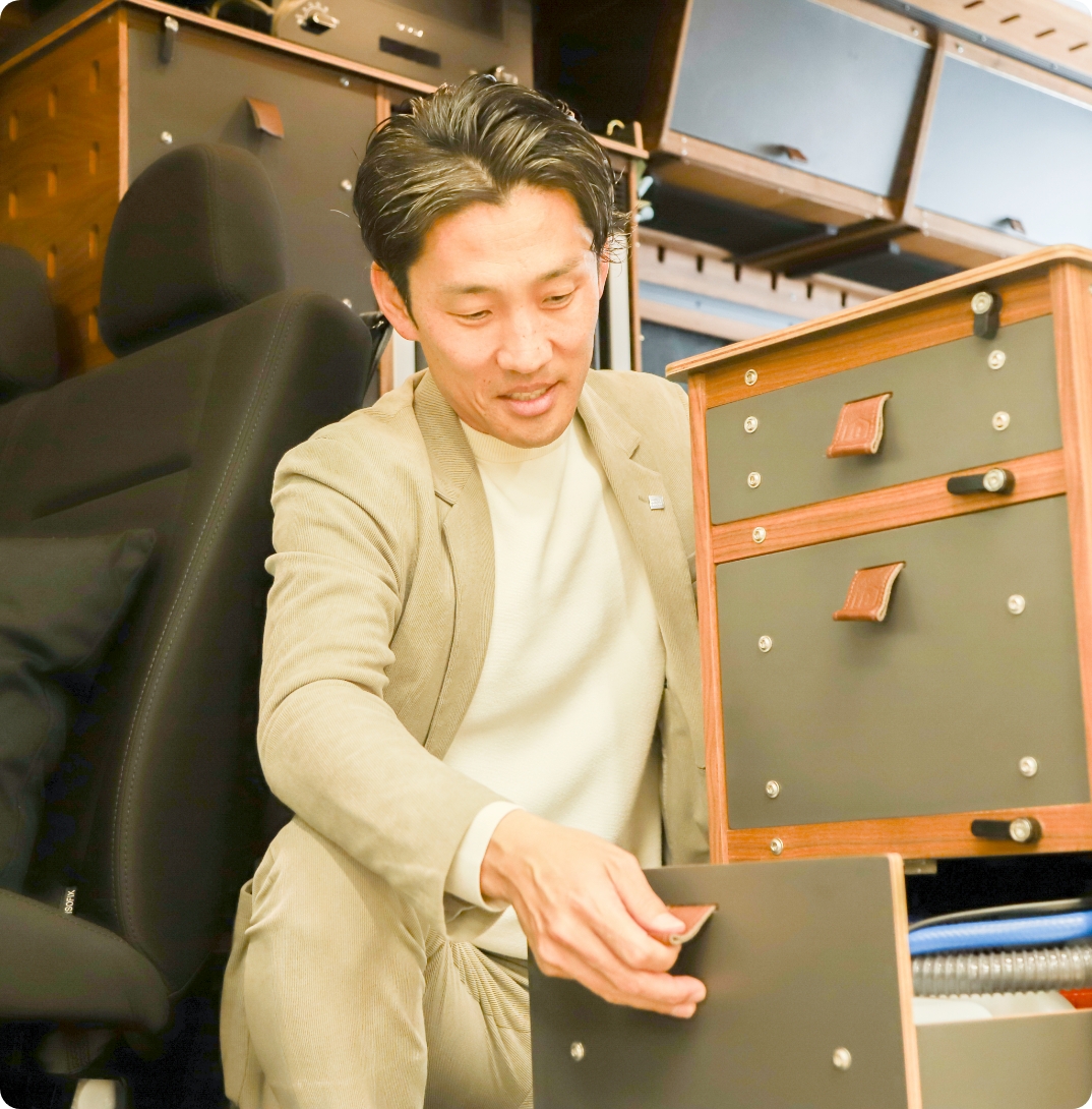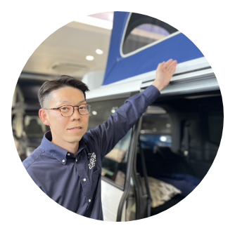 キャンピングカーは様々な工程を経て出来上がります。営業の私たちは、完成したキャンピングカーをお客様にご提案し、その魅力や使い方をお伝えする役割を担っています。