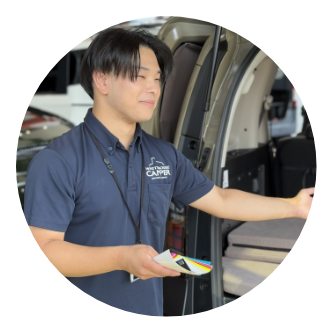 ショールームやイベントでキャンピングカーをご案内し、お客様の理想の使い方に合わせて車種や内装、装備を提案します。メールや電話でのフォローアップも多く、遠方の方には写真や資料を活用して丁寧にサポート。ご成約後も納車までの対応を一貫して担います。
