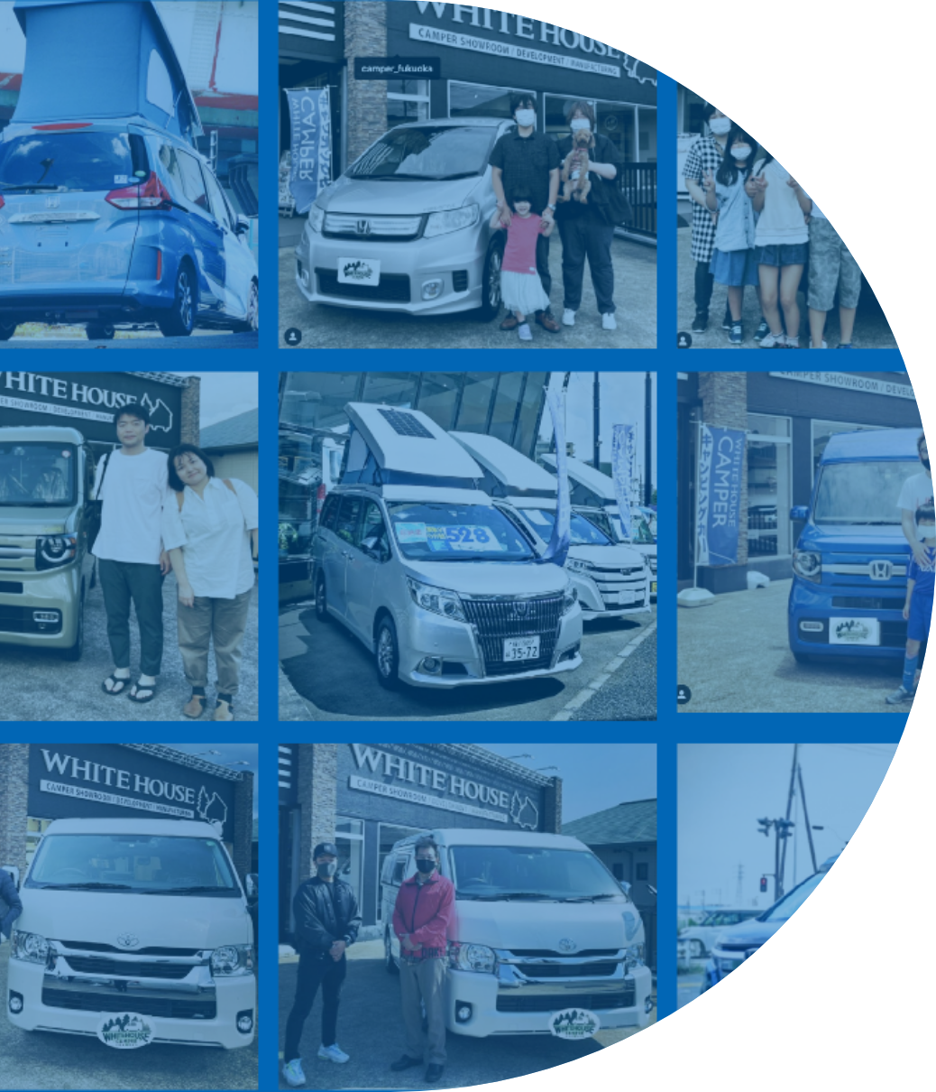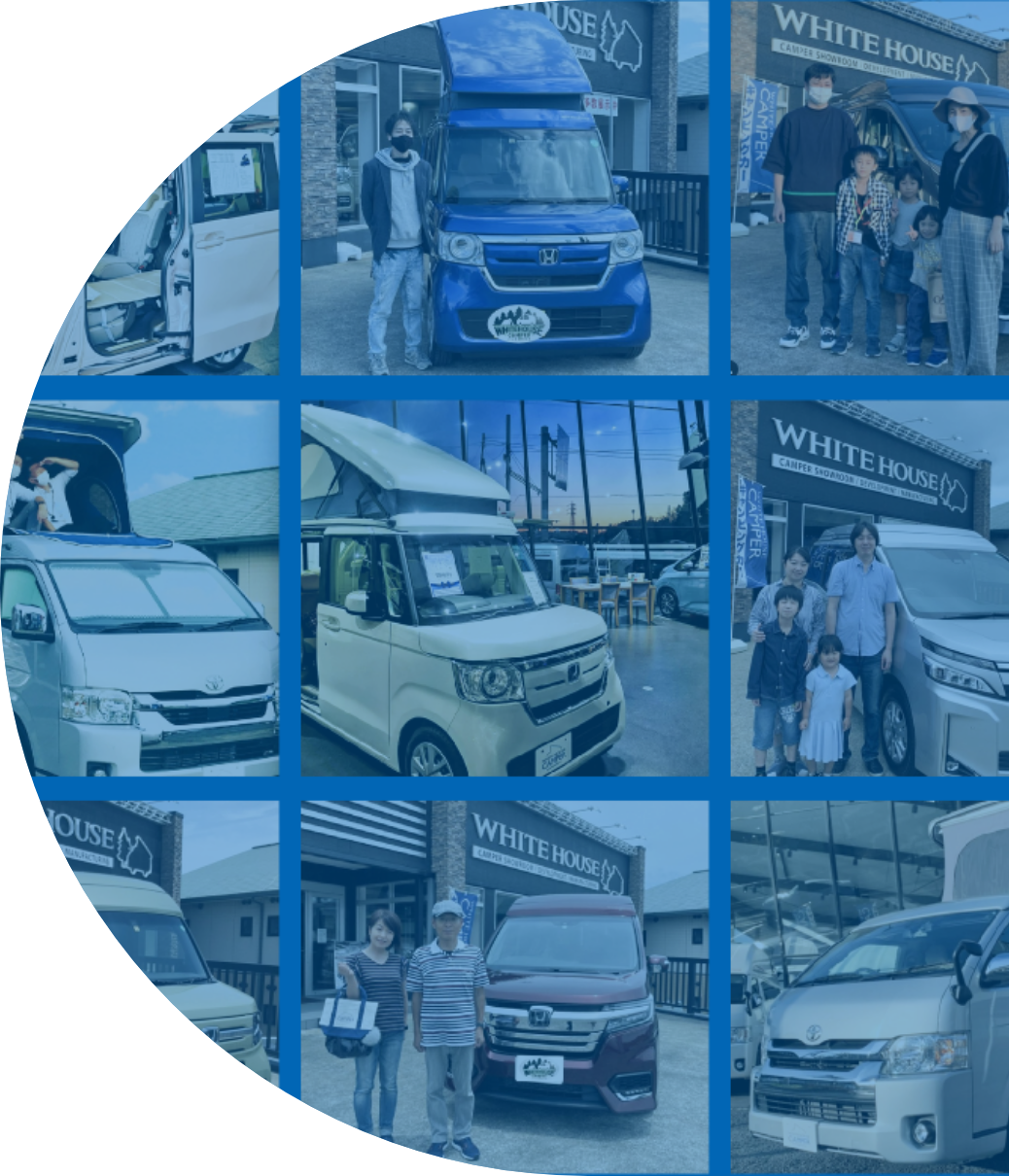- 軽キャンパー、ワンボックスからハイエースそして世界が誇るFIAT PROFESSIONAL「デュカト」まで、多彩なオリジナルキャンピングカーをラインナップ。大きな特徴はポップアップルーフなど、ホワイトハウスキャンパーの車を、お客様のご要望、夢に寄り添って、ご案内、ご提案する仕事です。